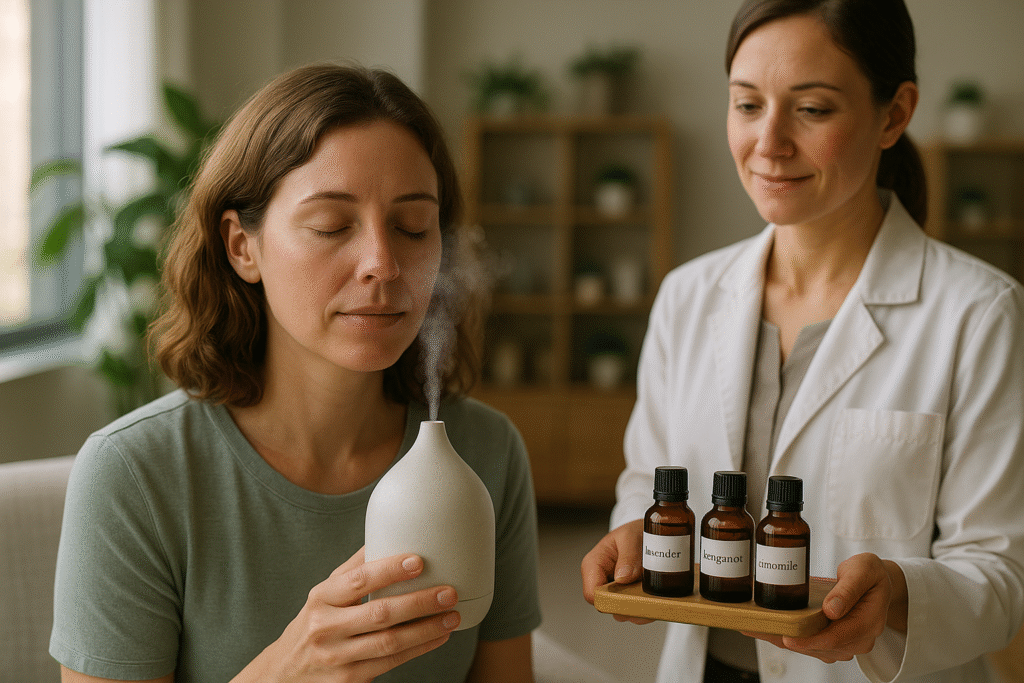Um dos campos mais promissores da aromaterapia é o tratamento de condições de saúde mental. Diversos estudos e metanálises têm demonstrado a eficácia de óleos essenciais como lavanda, bergamota e limão na redução dos níveis de estresse e ansiedade. A inalação desses óleos pode modular a química dos neurotransmissores cerebrais, promovendo um estado de calma e bem-estar. Por exemplo, um ensaio clínico com profissionais de saúde demonstrou que a aromaterapia com lavanda reduziu significativamente a ansiedade [5].